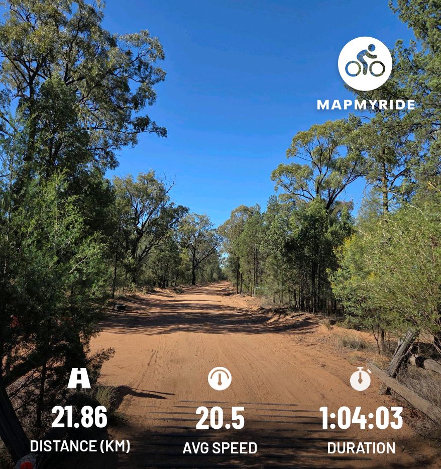Another glorious morning in Narrabri. I normally reckon an average speed of 20 km/hr is pretty good, but today I averaged 22 so that’s impressive for me. #cycling#Narrabri