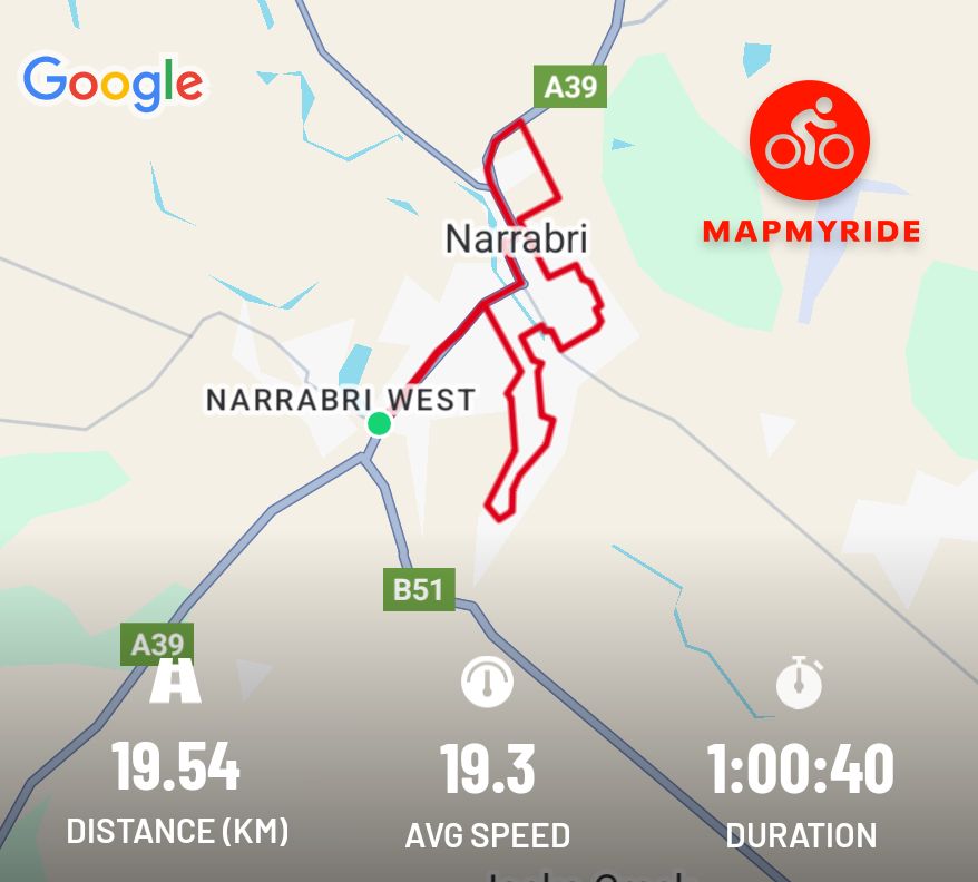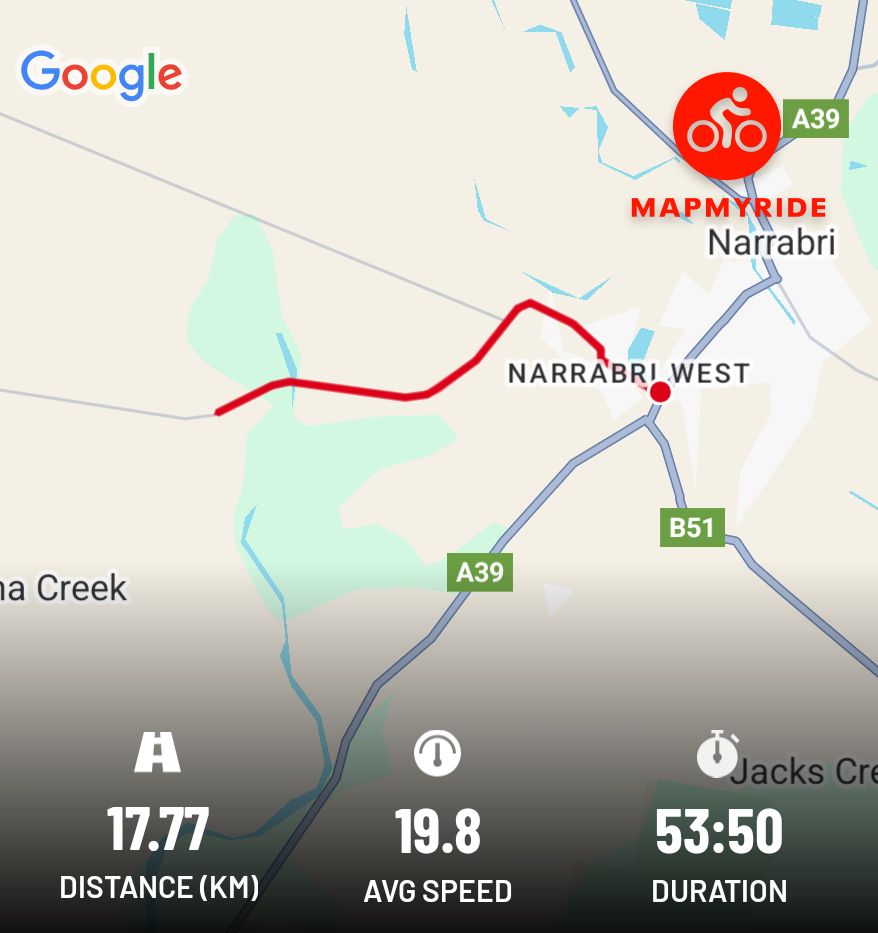 Somewhat windy this morning, and to be honest, I would have stayed at home but for the fact that I already missed two days in a row. I rode to Bunnings then around the edge of town and down to the Riverbend Estate before heading home. #cycling#Narrabri