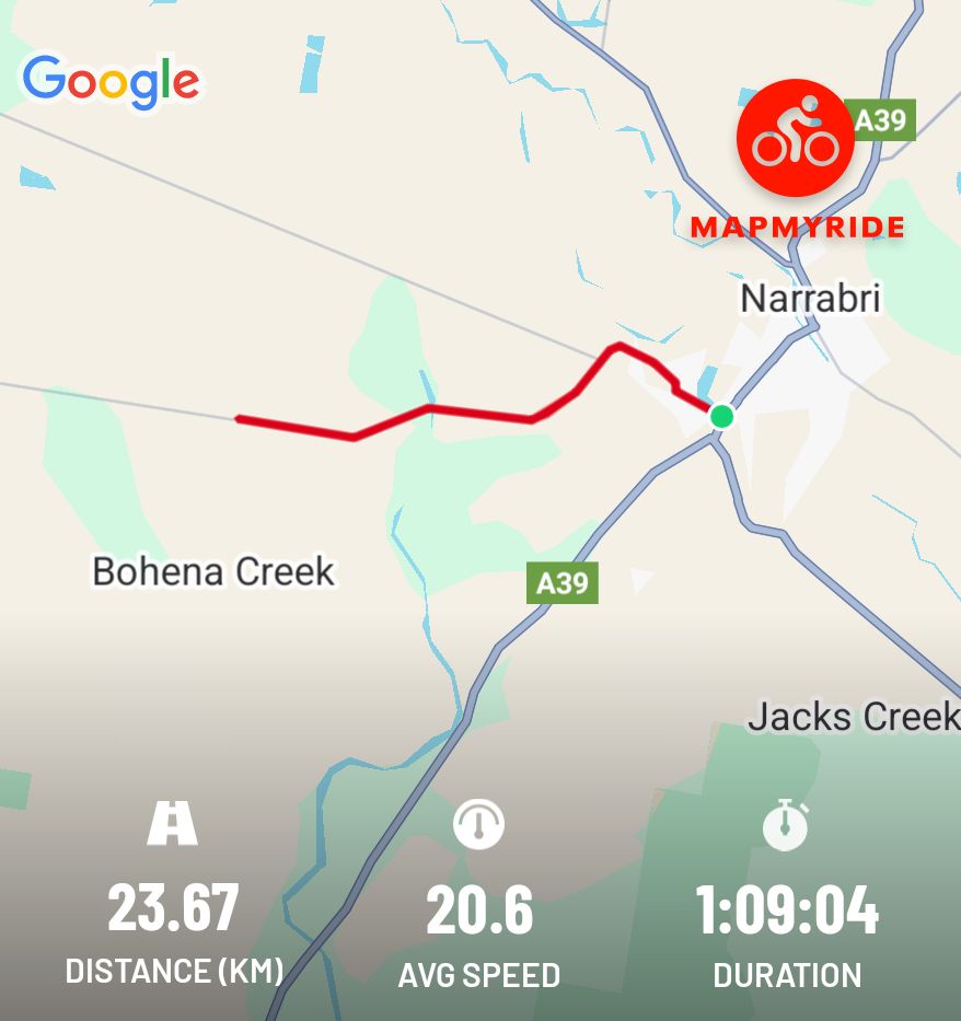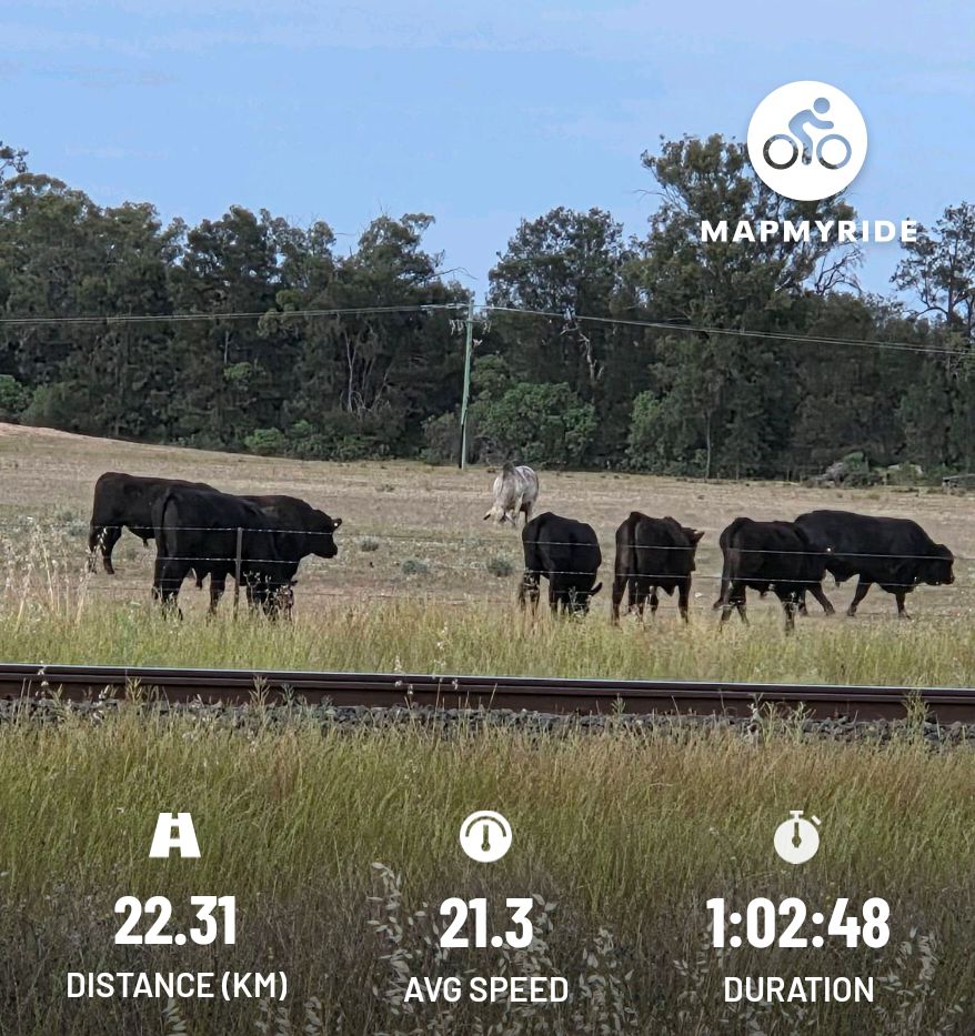 A warmer morning, ideal for riding. I rode to Bunnings, then around the edge of town and down to the Riverbend Estate before heading home. My ride was enhanced by about 5 murderous magpies and a few pugnacious peewees. #cycling #Narrabri #biketooter