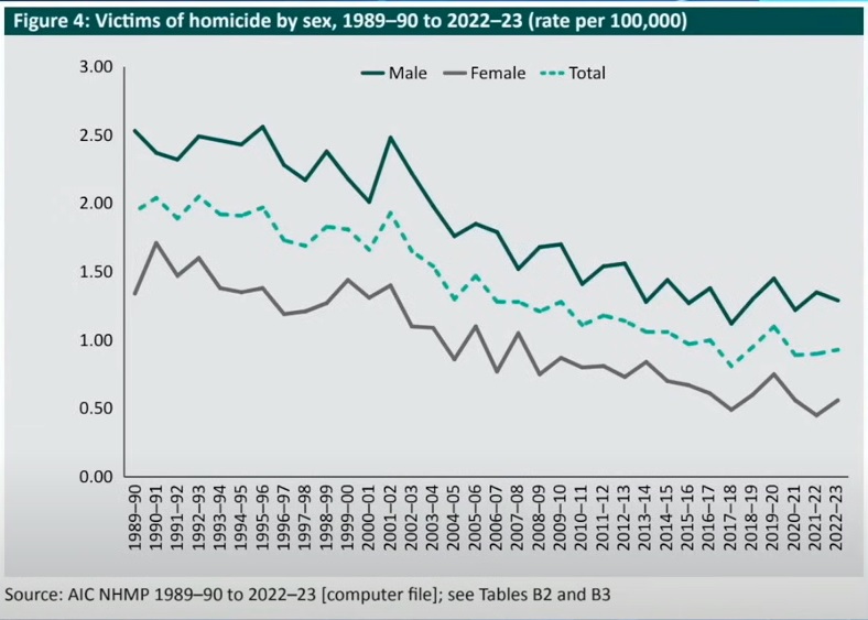 Official statistics from the Australian Institute of Criminology tell a different story.