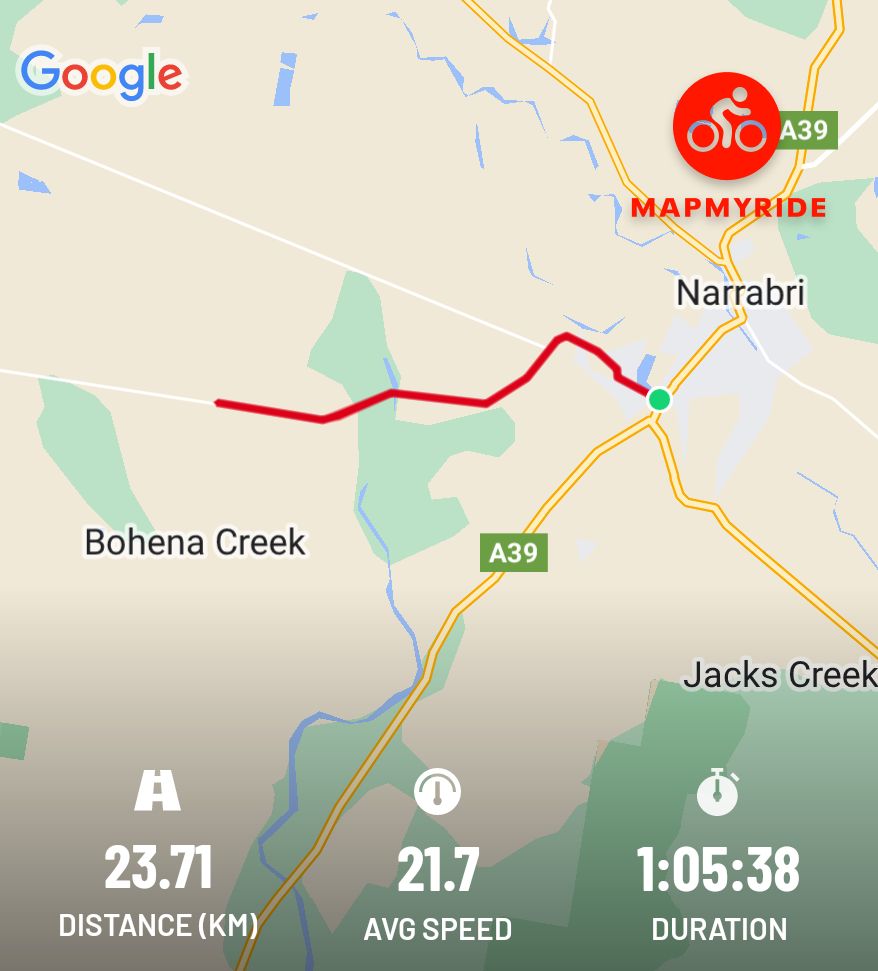 A beautiful morning in Narrabri. I rode to Bunnings then around the edge of town and down to Riverbend Estate before heading home. #cycling #Narrabri #Biketooter