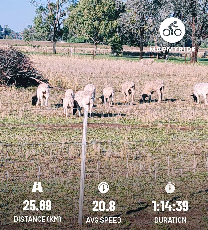 A slightly shorter ride this morning due to other commitments I went out to Bunnings and around the edge of town and down to Riverbend Estate before heading home. #cycling #Narrabri #Biketooter