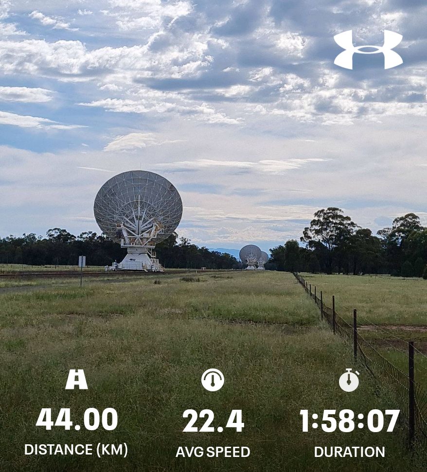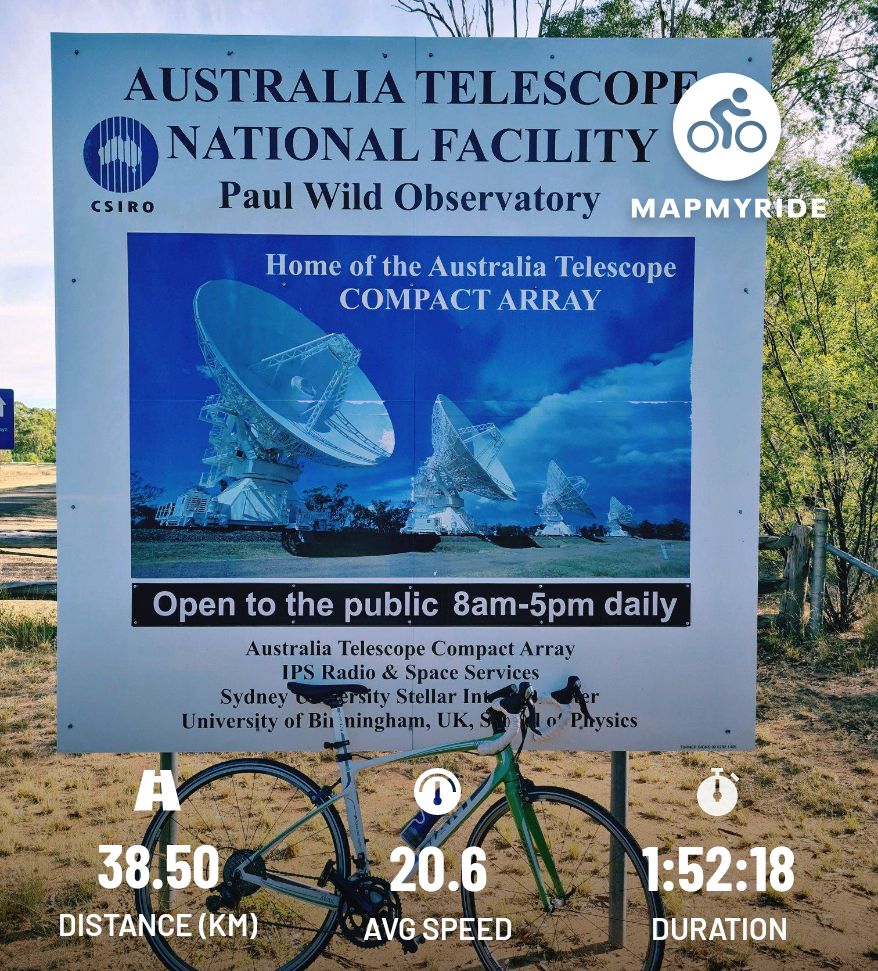 A good ride along Yarrie Lake Rd out as far as the entrance to the Telescope. It has been a struggle to get back to my normal fitness so this was a good achievement. 🙂 #cycling #Narrabri #Biketooter #radioastronomy